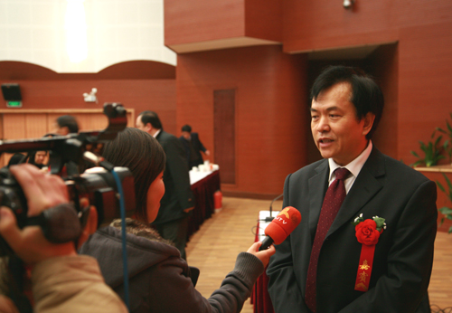 江苏省工艺美术行业协会理事长马达给分会会长徐发波颁发会长证书