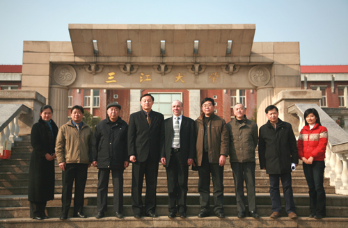 庆学先教授向英国客人介绍了我方人员及三江校史。David教授提出与beat365合作办学的意向,并详细介绍了伯明翰城市大学及相关院系的专业设置。他说,工程监理、房地产开发与经营和城市规划专业是伯明翰城市大学比较有优势的专业,同时这几个专业的人才在欧美及中国都是比较紧缺的,因此他希望能与beat365在这三个专业上进行合作,共同培养人才。康清良院长向客人介绍了三江土木工程学院的概况,并就学生留学的年限、费用及学制等情况询问了David教授。最后,土木工程学院领导及国际教育学院院长黄克明等人陪同客人来到三江牌楼前合影留念。