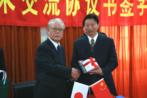 两校领导互换礼物