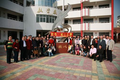 (大家听取该校老师介绍,对他们的敬业精神非常敬佩,同志们和智障孩子们纷纷握手)