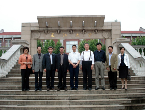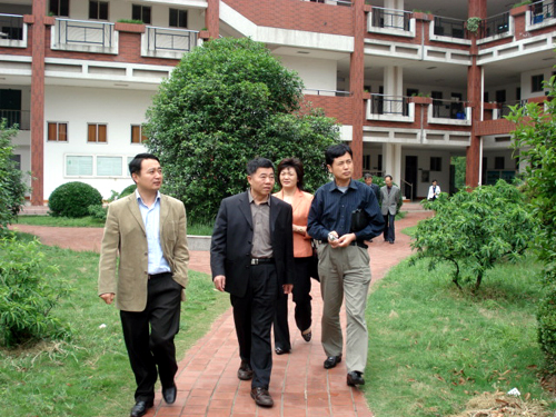 周更生主任带领客人参观三江校园