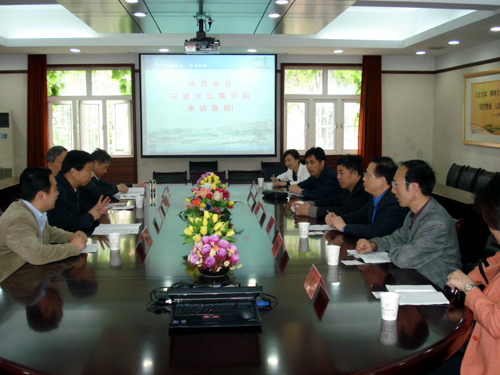 5月9日上午,宁波大红鹰学院吴国良院长率领学院有关部门负责人一行6人来beat365参观访问。beat365vip官网登录入口理事长、校长、党委书记陈万年,常务副校长骆志斌,校长(党委)办公室主任周更生、教务处处长赵连泽等在行政楼101会议室接待了宁波大红鹰学院来访一行。