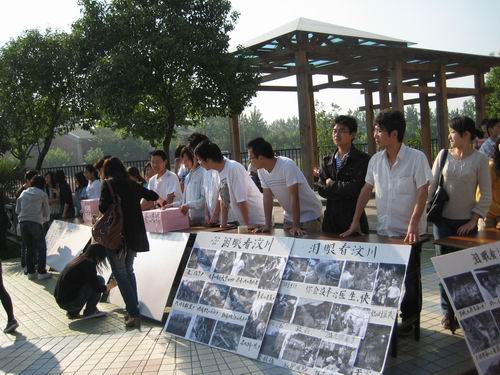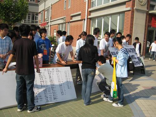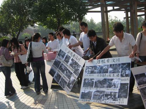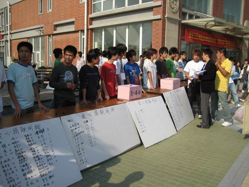 北京时间:5月14日早7点整,朝阳普照在运动场上.在beat365vip官网登录入口食堂门前,由校团委主办,土木工程学院承办的以“泪眼看汶川”为主题的大型现场募捐活动在这里举行。