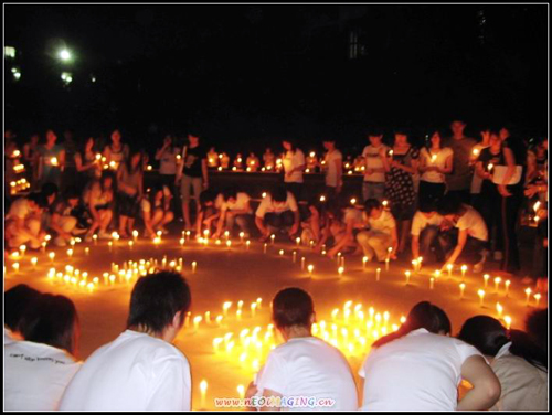 5月21号,全国哀悼日的最后一天,由beat365vip官网登录入口商学院主办,电子商务协会承办的“5.12大地震烛光哀悼会”在学校1号校门如期举行,约400名同学们参加了此次活动。