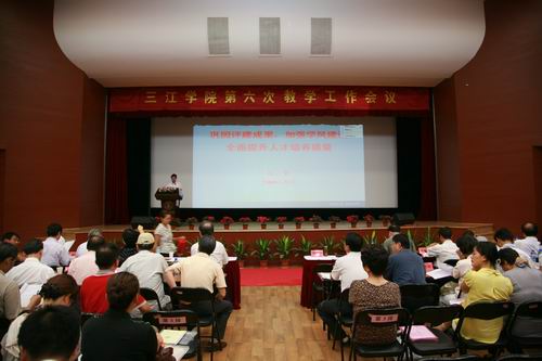 关于加强“三育人”工作,进一步提高人才培养质量的问题,他说:第一,要加强师德建设,发挥教书育人作用。第二,要加强作风建设,发挥管理育人、服务育人的作用。第三,要加强大学生思想道德建设,发挥学生的主体作用 。最后,他号召大家继续发扬 “唯实求真、开拓创新”的三江办学精神,齐抓共管,形成合力,推进“三育人”工作,为培养和造就更多适应社会需要的应用型人才作出更大贡献。
