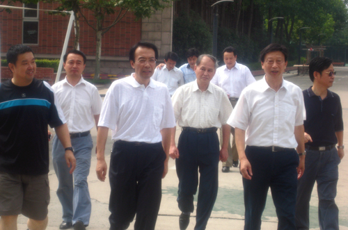 王建华书记一行在陈万年校长等陪同下,实地考察了学校教学楼、体育馆、艺术学院、计算机科学与工程系等教学基础设施与实验室建设。