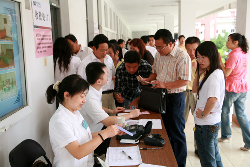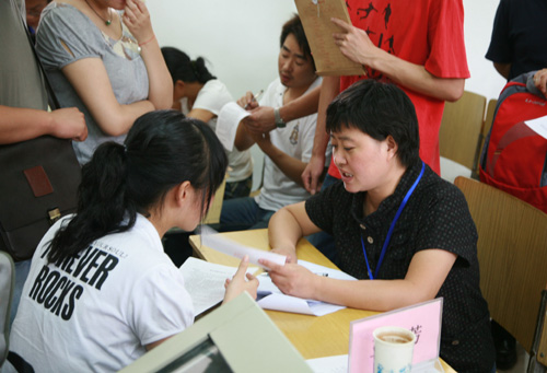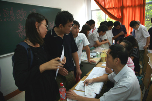各报名点人头攒动