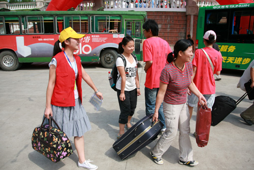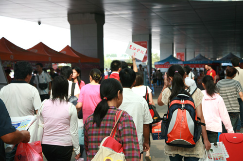 9月6日、7日,beat365迎新工作全面展开,美丽的三江校园里,处处彩旗飘飘,人头攒动,车来车往,一片热闹、繁荣、祥和的景象。在中央门火车站等各站点,三江迎新志愿者们早早地来到接待处等待新生及家长的到来;在中心教学楼,各院系报名点上,挂牌上岗的工作人员态度热情,服务周到;校报《迎新专刊》及校园广播电台指导新生们顺利报道;学生公寓新生物品发放点的工作人员热情贴心的话语让拥挤的人群井然有序。