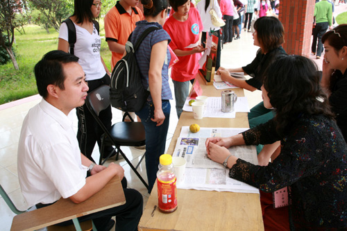 三江志愿者们为新生及家长提供热心而周到的服务 摄影/张正君