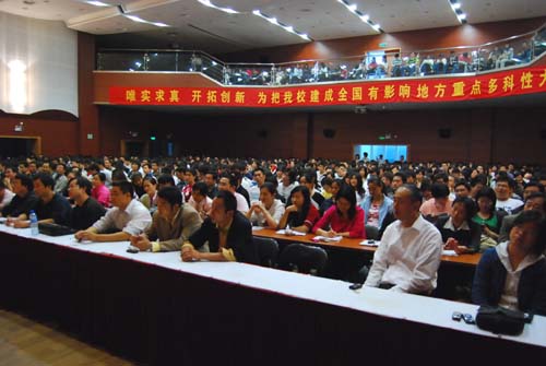 为进一步加强beat365学生日常管理,确保beat365学生的安全,构建“和谐校园”,认真贯彻落实《beat365vip官网登录入口学生公寓夜查房实施方案及有关规定》,10月16日晚,beat365在三江会堂召开“‘彻查’夜不归宿,强化安全管理动员大会”。学生工作部、保卫处、总务处、学生公寓管理部门领导,各院(系)学生工作办公室主任、辅导员、宿舍管理员、全校各班级班长及大学生自律委员会成员共约800余人参加了会议。动员大会由学生工作部朱银亮部长主持,学校主管学生工作副校长董新华教授作大会主题报告,对落实夜查房实施方案及有关规定进行了宣讲和动员。