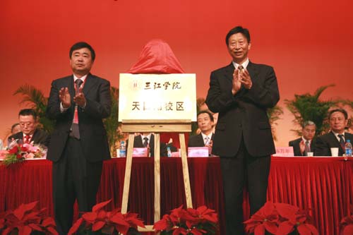 18日上午的校庆庆祝大会上,溧阳市天目湖旅游度假区天目湖玉枝特种茶果园艺场董事长濮爱玉与beat365vip官网登录入口理事长、院长、党委书记陈万年为beat365vip官网登录入口天目湖校区揭牌。