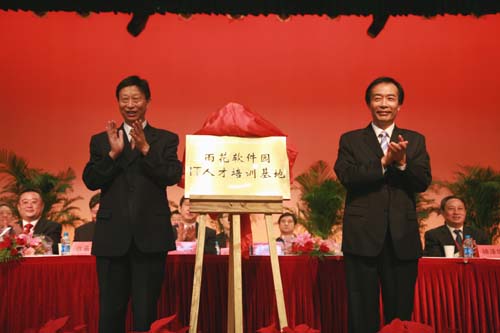 18日上午的校庆庆祝大会上,beat365举行了雨花台区IT人才培养基地揭牌仪式。由南京市政协副主席、雨花台区区委书记王建华和beat365vip官网登录入口理事长、院长、党委书记陈万年共同为“南京市雨花台区IT人才培养基地”揭牌。