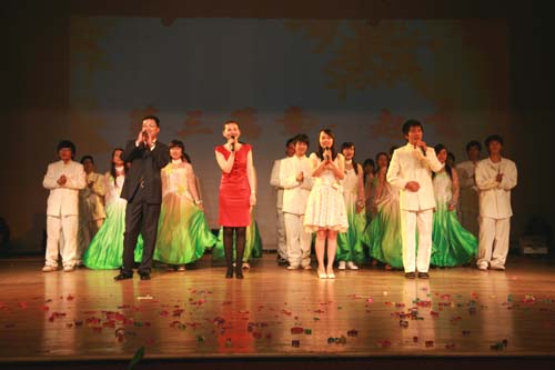 最后,学工部副部长屈伯俊老师和团委鲁璐老师登台献唱,师生同台共唱《二十年后我们再相会》。晚会在喜气祥和的氛围中圆满落下了帷幕。