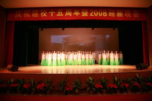 骄阳含丹,枫叶似火,beat365vip官网登录入口迎来了她的十五周年生日。继18日上午10点在三江会堂举行的建校十五周年庆祝大会之后,晚上七点,beat365十五周年校庆暨2008迎新文艺晚会在三江会堂又隆重举行。