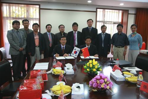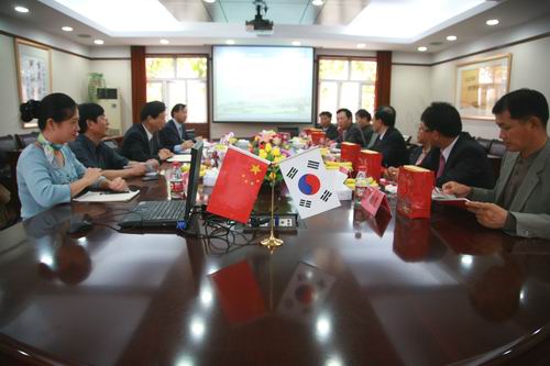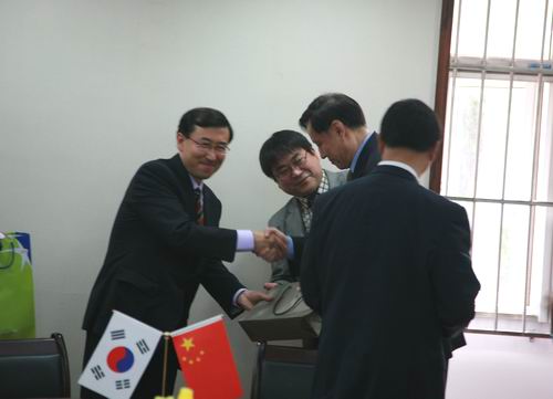 10月20日上午10时,韩国大佛大学校长李升勋等一行八人访问beat365。beat365校长陈万年、国际合作与交流处处长黄克明、涉外旅游系主任张孝君等热情接待了来宾。