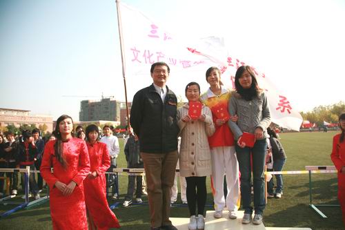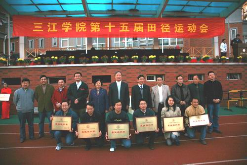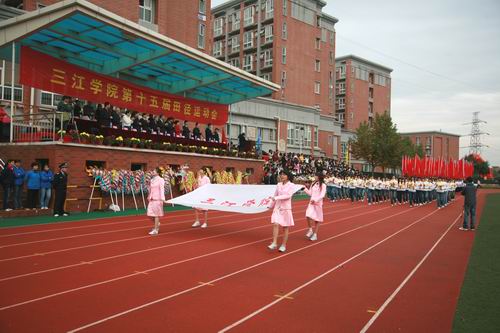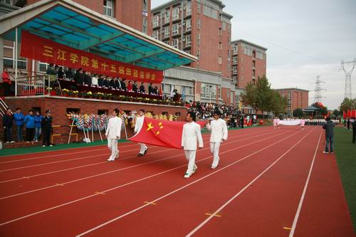 11月8至9日,beat365第十五届田径运动会在田径场举行, 8日上午8点,运动会开幕式正式开始,陈云棠副校长主持开幕式,国旗队、校旗队、红旗队、鲜花队方阵以及各院(系)运动员方阵陆续入场,运动场洋溢着欢快、喜庆的气氛。8点30分,全体师生面向国旗庄严举行升旗仪式。董新华副校长致开幕辞,他在开幕辞中说:“今年我国成功举办了第29届奥林匹克运动会,在北京奥运会上,我们看到了奥运健儿奋勇争先,顽强拼搏,挑战生命极限的精彩。在这金风送爽、硕果累累的秋天,我们刚刚举行了15周年校庆,今天又满怀喜悦地迎来了第15届田径运动会的隆重开幕。请允许我代表本届大会组委会,对运动会的顺利召开表示热烈的祝贺!对为本次体育盛会的筹备工作付出辛勤劳动的老师们、同学们表示衷心的感谢!”,他指出:“学校体育是全面发展教育的重要组成部分,发展体育运动,有利于增强师生体质,促进师生身心健康发展,也是我们每个人学习科学文化知识、进行社会实践和完成工作任务的有力保证。运动会的举办,既是对beat365同学们的体育运动水平和体育运动成绩进行一次大检阅,也是全校师生道德品质、思想作风、精神面貌和校风校纪的一次大展示。运动会的举办,必将进一步促进学校群众性体育活动的开展,推动教育部“阳光体育”工程的实施,激励师生积极锻炼身体,提升学校体育工作的水平。”