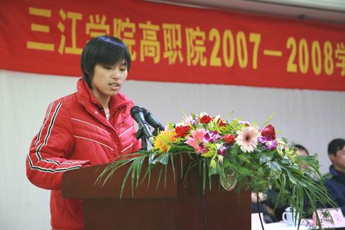 在表彰大会上,校长助理、职成院院长郭彬首先作了汇报讲话,回顾了职成院一年以来的各项工作,在教学、学生管理、招生就业等多个方面都取得了新进展,具体表现在四个方面:一、高职2008年全部完成了510个招生计划,报到率92.35%,就业率不断提高,2008年我院就业率97.3%;二、教学管理工作加强了对学生实验、实训环节的培养,2008年度我院在各类证书以及英语、计算机省级统考中都取得了不错的成绩,尤其是今年春季省计算机一级统考中有4个班级通过率100%,3个班级通过率95%以上;三、学生管理工作注重了计划性和可持续性,狠抓班风、学风,确保学生工作的稳定与安全;四、党建工作有了新突破,目前我院学生工作中设立了四个学工党支部,按年级进行学生党员的发展工作,加大了在学生中的党建力度。同时,在第十五届校田径运动会上我院五连冠继续蝉联团体总分第一,这些成绩的取得将激励着职成人不断加强自身建设,继续前行。随后,在热烈欢快的气氛中校领导为获奖同学颁奖,鼓励他们再接再厉,不断努力。另外,2007-2008年度国家励志奖学金获得者、职成院学生会副主席、06计算机班班长赵建慧同学代表所有受表彰的同学进行了讲话,表达了她对母校辛勤培养的由衷感谢,以及在今后的学习生活中争取继续拼搏、不断超越的坚定信心。