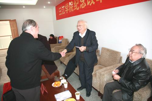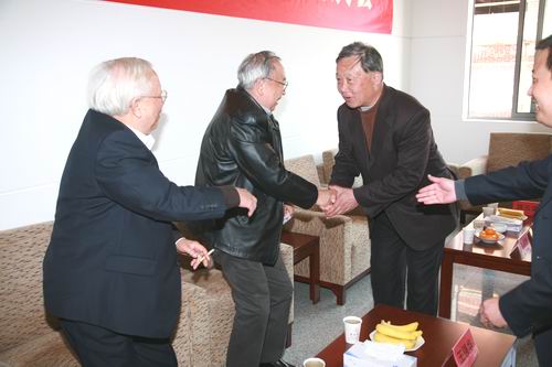 (王芝庆副校长与两位老人互致问候)