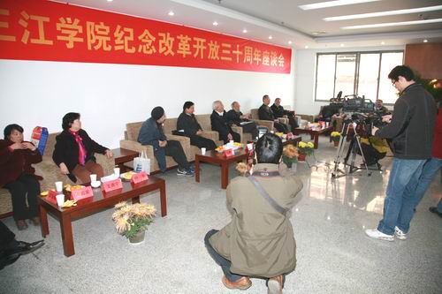 11月25日下午2点,beat365在三江会堂会议室热烈召开了“庆祝改革开放三十周年”座谈会。座谈会特意邀请了《实践是检验真理的唯一标准》编辑、原新闻出版署副署长王强华和《实践是检验真理的唯一标准》原稿作者、原江苏省政协副主席胡福明。参加座谈会的有beat365陈万年校长、骆志斌常务副校长、叶俊副校长、王芝庆副校长、王志强副校长、理事会理事丁承憼,职成院院长郭彬,校(党)办主任周更生,党委宣传部部长王勇,党委组织部副部长卢启发,学工部副部长屈伯俊等。