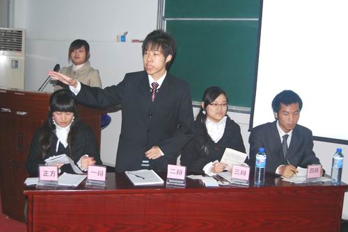 在这一个多月中,全校17个院(系)的代表队经过激烈竞争,其中四个院(系)过五关斩六将,终于站在今天的决赛场上。担任决赛评委的分别是党委宣传部王勇部长、党委宣传部宋常铁老师、团委书记学工部副部长屈伯俊老师、团委副书记沈爱军老师以及文学院陈建华老师。 比赛分两场,第一场为季军争夺赛,反方代表队来自电子信息工程学院,正方来自计算机科学与工程学院, 最终正方计算机科学与工程学院顶住了压力,获得了季军。同时,正方的一辩——大一新生张兴良同学获得了这场季军争夺战最佳辩手的称号。