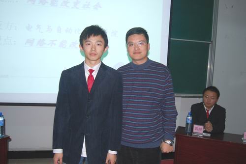 (学工部副部长、团委书记屈伯俊与最佳辩手合影)