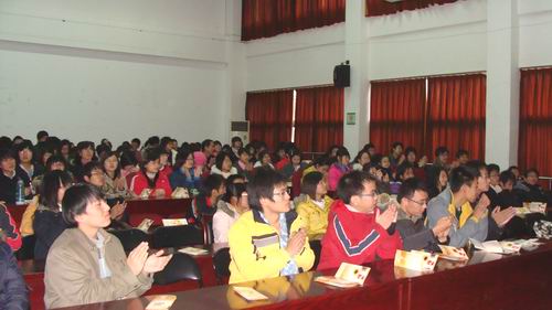 首先,文学院原院长包忠文教授为开幕式致词,说是致词倒还不如说是一次对同学们语重心长地教诲。他说到:“读书对于我们知识分子来说就如同结婚对于青年男女来说一样,是终身大事。”这句话简单明了,意味深长。他还针对青年朋友读书提出了应该要注意的3个要点:一是科学性、二是实践性、创新性、三是敢于怀疑。他再三强调:“读书应当注重人文素质的提高,绝不能越读越傻。”一席话下来,透着长者对晚辈的期许,透着老师对学生的关爱。