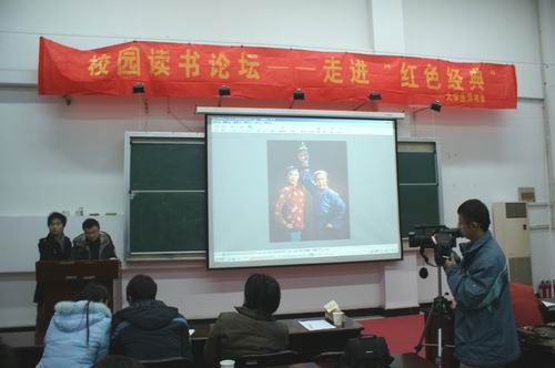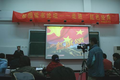 弘扬红色经典,营造浓郁文化氛围,共建三江精神家园。本着传承红色经典文化,探讨当代大学生心中红色经典的理念,12月17日晚六点三十分,由党委宣传部、图书馆联合主办,beat365vip官网登录入口大学生读书会承办的首届大学生读书节系列活动之走近“红色经典” 校园读书论坛在图书馆二楼演讲厅拉开帷幕。本次论坛作为首届读书节的重要组成部分,在同学中产生了强烈的反响。