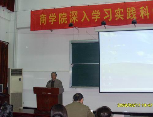 党总支书记王瑜同志具体布置了深入学习实践科学发展观学习阶段的工作计划,要求全体党员和商学院老师们认真学习文献,深刻理解科学发展观的精神实质,充分认识学习实践科学发展观的重大意义。在学习的基础上,认真联系实际,查找学校、学院或本人不符合科学发展观的问题,以便解决落实。