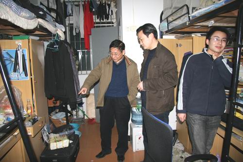 3月17日晚,校党委副书记、副校长董新华教授带领学工部、后勤宿管部和保卫处相关人员抽查了学生工作值班制度执行情况、学生公寓管理工作、校内商业网点遵守营业时间和学生夜间行为规范等情况。学工部长朱银亮,副部长卢启发、周学军,学生公寓管理部吴杰波主任参加了检查。
