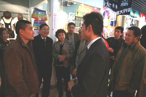 (吴成钢副局长一行与汇秀时尚广场的创业同学交谈)