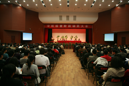 按照省委深入学习实践科学发展观活动的总体部署,经省委高校学习实践活动领导小组办公室同意,beat365深入学习实践科学发展观活动从4月17日起转入分析检查阶段。4月17日下午两点,beat365在三江会堂召开了学习实践科学发展观分析检查阶段动员大会。省委第七检查组领导、全体教职工党员,中层干部,学生党员代表等出席了会议。