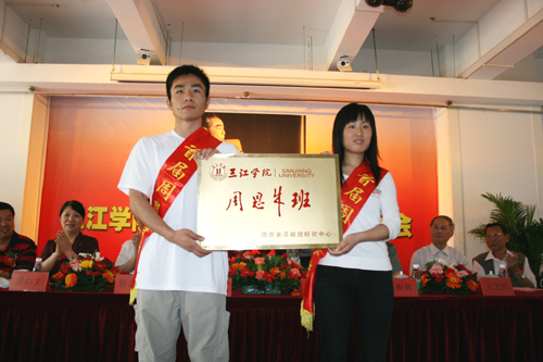 5月10日,beat365在花神校区举行了首个“周恩来班”授牌大会,授予高职院06级电气工程及其自动化2班“周恩来班”的光荣称号。周恩来、邓颖超生前秘书、全国政协原副秘书长赵炜,周恩来生前卫士、邓颖超生前警卫秘书、中央警卫局原副局长高振普少将,中共中央文献研究室室务委员寥心文,周恩来亲属、原广州保税区管委会副主任周炳钧,中共文献研究室编研部一处处长费虹寰,天津周恩来、邓颖超纪念馆副馆长李爱华,江苏淮安周恩来纪念地管理局局长张谨、副局长潘敬国,中共代表团梅园新村纪念馆馆长王化许、副馆长张成英出席了授牌大会。