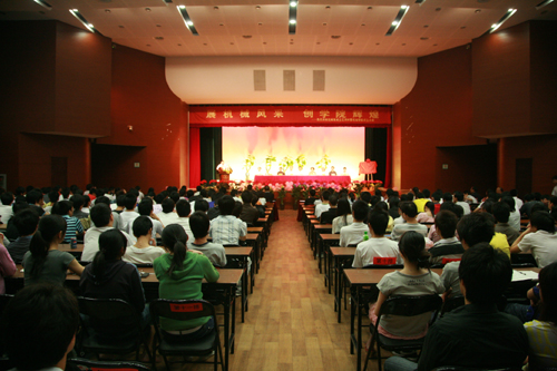 机械工程学院院长赵敖生教授首先致辞。他激情洋溢地回顾了机械系从无到有的发展壮大过程。在说到机械学院现阶段的发展时,他说,学院要集中力量,打好七大战役:一、机械设计制造及其自动化专业学士学位授予权申报(已申报成功)。二、积极努力开展科研工作。(我院与江苏高科签订合作协议,参加“舰艇用除湿项目网络通信与监控总体方案”预研竞标,获得首批科研经费7万元,学校同步追加7万元,实现我院科研项目零的突破。)三、根据学校的部署,全力以赴,积极申报省级机械综合实验教学示范中心。四、在前五年的教学实践基础上,总结经验,广泛调研,全力修订09级的人才培养方案,期望在应用型人才的培养上有新的突破。五、集中精力第三次冲击汽车服务工程本科专业的申报,并积极准备申报材料成型与控制工程专业。六、组织挑选新生力量,充实我们的教师队伍。七、把安全和稳定放在学生工作首位。加强学生一日常规的教育和管理;通过党建带团建,树立正面典型,培养优秀学生骨干,为创建优良的院风、学风打下坚实的基础;抓好学生技能培训和科技创新,提高动手能力和社会竞争力,力争毕业生就业率位于学校前列。最后,赵院长附诗一首,勉励全院师生团结拼搏,再创辉煌。