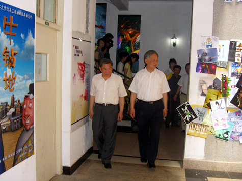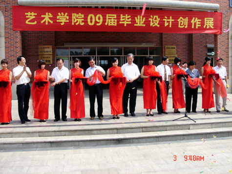 接着,由陈万年校长、骆志斌常务副校长、叶俊副校长、陈云棠副校长、王志强副校长、董新华副校长、笪佐领副校长和艺术学院邢小刚院长共同为艺术学院09届毕业生毕业设计创作展剪彩。