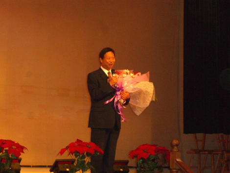 陈万年校长在热烈的掌声中讲话。陈校长首先代表全校师生对艺术学院的同学们在全国数字艺术动画设计大赛中获奖表示热烈的祝贺。他指出。艺术学院几年来发展迅猛,在培养人才方面作出了较大贡献。这次又在第三届全国数字艺术动画设计大赛江苏分赛区大会上取得了令人振奋的好成绩,同学们以自己的刻苦钻研、努力创新赢得了荣誉,也为学校争了光。陈校长鼓励大家,艺术学院有着远大的发展前途,这次学校决定艺术学院搬迁南校区,可能会遇到一些困难,但也给艺术学院的发展留下了广阔的空间。万事开头难,相信艺术学院的老师和同学们有勇气、有信心、有办法去主动克服前进中的困难,为创建一个美丽、文明、和谐的南校区做出贡献。陈校长还祝愿毕业生有灿烂的前程,美好的未来;祝愿艺术学院向着又快又好的发展目标取得更大成绩。