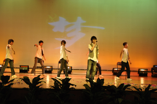刚刚踏入三江校园,开启大学生活的学生们总是有无限激情去挥洒自己的青春,他们靓丽、活泼、动感,他们是歌者,也是舞者。恰恰舞《阿莲瑪娜》首先调动了现场气氛,观众们跟着节奏打起整齐的拍子。《毕业那天,请别说再见》中,三位舞者用丰富的肢体语言表达了即将离别的复杂情感,用现代舞来表现这个温婉的主题可谓独具创意。新生校园歌手的歌曲联唱也表达了初进三江的学子内心的希冀:《离家远走》只为绽放《光芒》,只为青春《怒放的生命》。