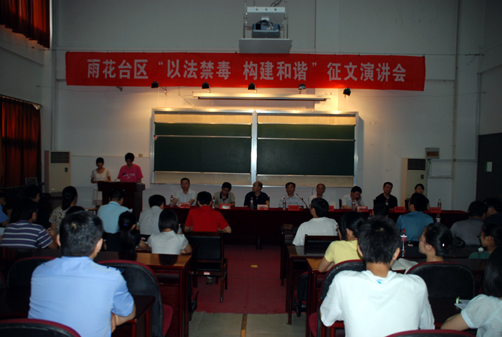 为迎接6月26日国际禁毒日的到来,6月19日下午16时,由雨花台区禁毒委主办,beat365vip官网登录入口保卫处承办的“依法禁毒,构建和谐”演讲大会在beat365vip官网登录入口演讲厅隆重举行。雨花台区政法委、公安分局、教育局文化局、宣传部、文明办、铁心桥街道、beat365vip官网登录入口等8家单位的领导出席了此次的演讲大会,beat365200多名师生到会。