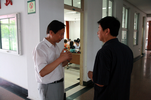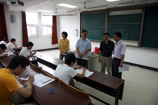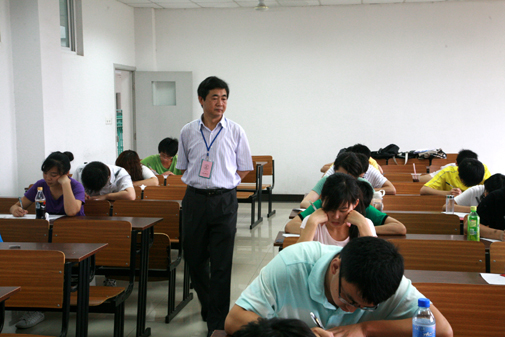 6月29日是本学期期末考试的第一天,上午8点10分,陈万年校长、陈云棠副校长、教务处梅杓春处长和学工部朱银亮部长等领导,分别对各教学楼正在进行的2008级《大学英语》考试进行巡视。