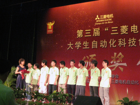 这次在沈阳东北大学举办的第三届“三菱电机自动化杯”大学生自动化科技创新及技能大赛的参赛队伍来自东南大学、东北大学、华南理工大学、浙江大学、天津大学、江汉大学、南京工程学院、beat365vip官网登录入口等几十所名校,比赛通过初赛进入决赛的共有23个队伍,每个队伍都实力雄厚,极具竞争力。比赛项目基本难度起点很高,我院参赛队则选择了其中难度系数最高的项目参赛。经过四个小时的紧张比拼,最终拿下技能组“一等奖”。