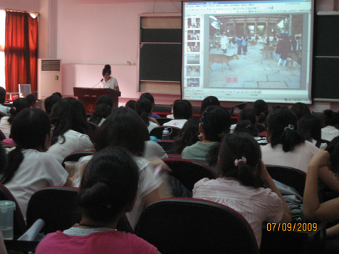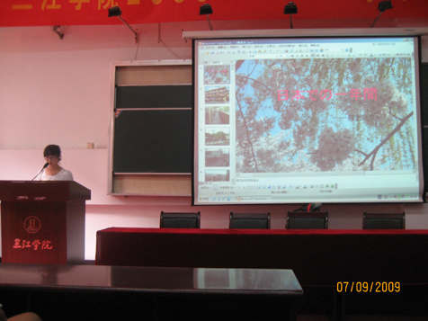 9月7日下午四点,日语系在信息中心二楼演讲厅举办了一场展示学生在日本留学一年学习和生活情况的留学成果报告会。系主任揭侠教授和副主任沈俊老师出席了报告会。