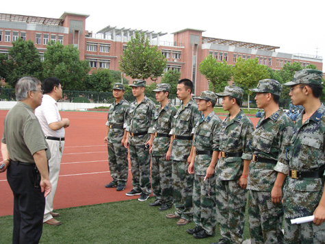 金秋时节,“秋老虎”又在逞威,天气十分闷热。9月9日下午,机械工程学院4营34连、35连、36连新生在教官的指挥下,正在进行紧张、有序的操练。学院赵敖生院长、李建民副院长、刘松伟副院长到军训现场看望慰问了全院参训新生及教官。