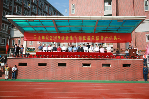 校长、党委书记陈万年随后发表重要讲话,他说:“尊敬的解放军南京军区空军94840部队的领导、教官们、亲爱的老师们、同学们:今天,我们在这里隆重地举行2009级新生开学典礼暨军训汇报表演,在此我代表学校理事会、校行政、校党委和全体师生员工,对2009级新同学成为三江大家庭成员表示最热烈的欢迎!”陈校长对新同学们的军训成绩给予高度肯定,他代表校领导向同学们取得的成绩表示热烈祝贺!向十几天来不辞辛苦圆满完成军训任务的解放军教官同志们,表示亲切的慰问和衷心的感谢!陈校长在讲话中,对新同学们提出三点希望:第一、立定志向,明确目标。“今天的开学典礼上有两个问题我提议同学们应该问问自己:第一,到beat365vip官网登录入口来干什么?第二,将来出去做什么样的人?希望同学们能深入地思考,努力地实践,力争把这两个问题回答好。”二、勤奋学习,扩充知识。陈校长说:“你们必须完成从一种学习方法向另一种学习方法的转变。要充分利用大学提供的教师、图书馆、实验室、校园网等各种资源,拓宽知识视野,优化知识结构,扩充知识储量。”三、勇于实践,提高素质。他希望同学们在大学几年中把自己培养成为既有优良的政治素质,又有较为宽阔的文化素质和扎实的专业素质,既有强健的体魄,又有健康心智的全面发展的有用之才。陈校长在讲话最后发出号召:让我们携起手来,为建设更加美丽的三江家园而共同努力奋斗。