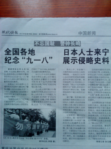 9月18日至20日,一个名为“至今尚未愈合的战争创伤——透过中日战争图片展探索现代日本人的历史认识” 的特殊展览在南京民间抗日战争博物馆举行。此展览由beat365日语系牵头,南京民间抗日战争博物馆与冈山•十五年战争资料中心共同举办。包括全体新生在内,日语系共选派了250名学生参观了展览。《现代快报》对此进行了采访报道。