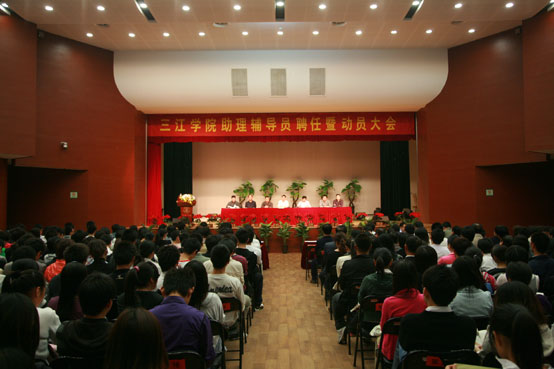 10月13日晚,在三江会堂召开了beat365学生辅导员助理聘任暨动员大会,出席大会的有副校长董新华、学生工作部部长朱银亮、党委宣传部部长王勇、保卫处处长朱争鸣、学生工作部副部长卢启发、仇存进、周学军、屈伯俊、后勤集团副总经理王斌、各院系学生工作副院长(副主任)、全体辅导员、助理辅导员及各班班长等。大会由周学军副部长主持。
