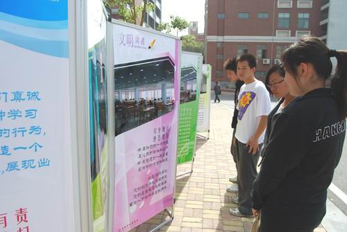 图书馆是学习、高雅的场所,但时常有一些不文明行为出现。此次活动通过宣传海报展示,签名活动,意在将“争做文明读者”的理念及具体标准渗透到同学们的日常学习生活中,为同学们营造一个更为安静、舒适的学习环境。活动分两个场地,新图书馆大楼前和一号食堂门口。副校长笪佐领教授作为图书馆馆长带头签名支持活动的开展。同学们在目睹了被污损图书的惨相后心灵深受震动,纷纷驻足留下姓名,并认真阅读展板所示的“文明读者教育指南”,表示愿意支持本次活动,在自我约束的同时号召其他学生一起争做文明读者,展现三江读者新风。很多学生正是以口口相传的方式来到我们的活动场地,甚至有学生主动加入我们的宣传阵营中,以实际行动支援本次活动。期间,也有很多老师主动前来签名,争做文明读者的表率。
