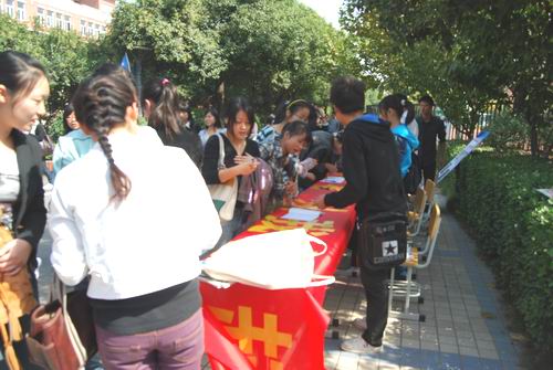(同学们踊跃参加签名活动)