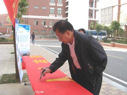 (副校长笪佐领教授作为图书馆馆长带头签名支持活动的开展)