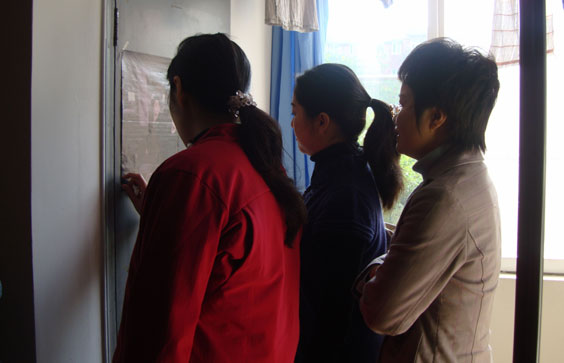 王芳、沈逸君副院长,孙颖娴老师在拆门上的明星画