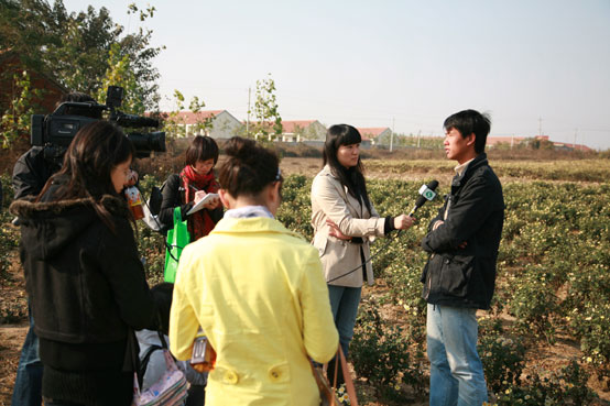 与泗洪县委组织部领导交流结束后,在有关人员的陪同下,王勇部长及记者一行来到秦树峰的杭白菊种植地,记者们争先恐后地与秦树峰进行了交流,就他当初选择村官道路,大胆创业及带领村民致富等有关事宜进行了采访与拍摄。
