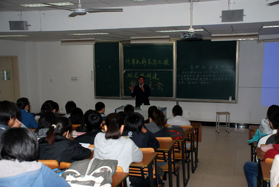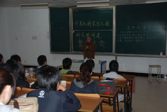 2009年11月12日中午12:30,计算机科学与工程学院全体党员、党员发展对象在3310举行了“双文明”创建誓师大会。计算机学院党总支书记王成均,常务副院长叶传标,副院长佟振明、郁政宏,全体辅导员参加了誓师大会。